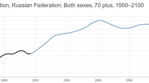 Показывает демографические данные с 1950 года и прогноз до 2100 года. Можно выбрать любую страну или регион. Отдельно строит графики и диаграммы по полу и возрасту Вот, например, прогноз численности лиц старше 70 лет. Согласно этому прогнозу, наибольших значений она достигнет к 2061 году (17,6 млн, сейчас - около 11 млн) А так выглядит прогноз численности молодых людей в возрасте до 20 лет...