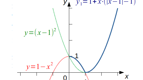 Построить график функции y = 1 + |x|·(| |x| – 1 | – 1) Прежде всего заметим, что выражение данной в условии задачи функции y(x) не имеет никаких ограничений, которые следовало бы наложить на возможные значения её аргумента, то есть областью определения y(x) является всё множество действительных чисел. Поскольку