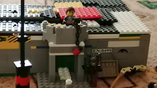 Всем привет, с вами Воронёнок, и я не только фанат компьютерных игр, но и фанат лего. Я сделал настоящую лего крепость, с техникой и другими объектами крепости. Большая часть самоделки сделана из деталей старых годов, некоторые постройки из китайской подделки. Также фигурки подделочные. Тут у меня к сожалению нет нормальных деталей лего но мне кое как удалось это построить. Сейчас проведу вам небольшую экскурсию. Как вы видите это Броне машина с пушками. Как вы видите она на два места, а также вышка с пушками хорошо защищена...