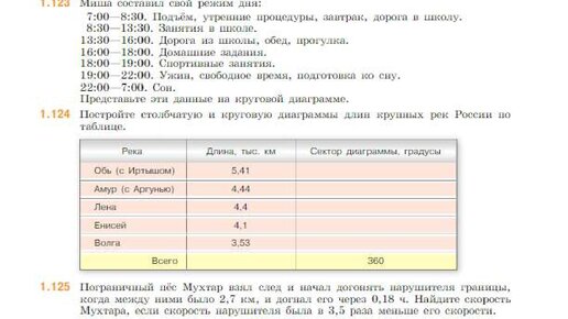 Прежде чем делать эти задания, нужно научится работать с циркулем и транспортиром. Задания на построение диаграмм подразумевает, что мы учимся сравнивать соотношение величин. И очень похоже на задания с процентами, где общее целое число - это 100%, которое состоит из составляющих. В диаграмме общее целое это - 360 градусов, и нужно высчитывать доли, сколько градусам равняются составные чисти целого. 1.122 Здесь целое - 36, для начала очень удобное число. Все 36 деревьев - это вся окружность целиком - 360 градусов...