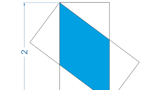 Два одинаковых прямоугольника со сторонами 1 и 2 наложили друг на друга как показано ниже. Определите площадь фигуры, образовавшейся на пересечении двух прямоугольников. Решение будет ниже, но не подглядывайте...