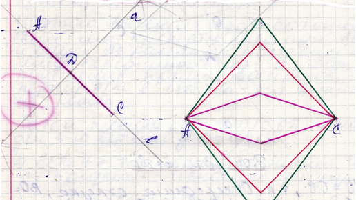 Построить ромб, если даны его противоположные вершины его третья вершина лежит на данной прямой. Пусть АВСD данный ромб (искомый) мы построили, причем т. D∈l.
