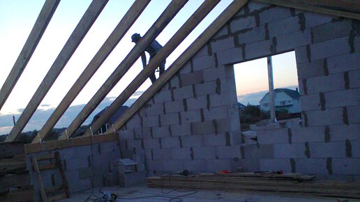 Поскольку этаж был мансардным и без перегородок (свободной планировки), задачей было сделать кровлю без дополнительных опор на пролёте в восемь с половиной метров. С учётом наклона длина стропил составляла 5 метров. При строительстве крыши было три фактора которые нужно было учесть: Самая сильная нагрузка конечно же идёт на стены, и существует огромное количество случаев, когда кровельные стропила из-за чрезмерных нагрузок деформируют стены особенно если они выполнены из газобетонных или пенобетонных блоков...
