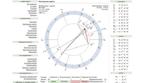 Друзья, для начала понимания того, как планеты влияют на вашу жизнь, вам нужно построить свою натальную карту. Но для этого необязательно обращаться к профессиональному астрологу, а тем более делать это на старте, когда вы новичок и находитель на начальном уровне познания астрологии. Я дам вам подробный алгоритм, как это сделать самостоятельно. Вот как выглядит натальная карта, построенная в одном из популярных астрологических сервисов. Для начальной стадии погружения в астрологию и для самостоятельного изучения ее будет вполне достаточно...