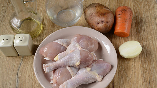 Ингредиенты. Куриное филе - 400 г Картофель - 315 г Морковь - 100 г (1 шт.) Лук репчатый - 120 г (1 шт.) Чеснок - 5 г (1 зубчик) Мука - 25 г (1 ст. ложка с горкой) Соль - 1 ч. ложка (по вкусу) Перец чёрный молотый - 0,5 ч. ложки Паприка сладкая молотая - 0,5 ч. ложки Чеснок сушёный молотый - 0,5 ч. ложки Лавровый лист - 1 шт. Перец душистый горошком - 2-3 шт. Прованские травы сушёные - 1 ч. ложка Масло растительное - 30 мл (2 ст...