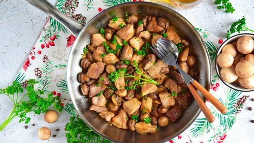 МЯСО С ГРИБАМИ НА СКОВОРОДЕ