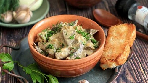 Говяжья печень в сметане на сковороде - 2 рецепта