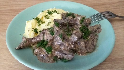 Мягкая и сочная свиная печень в сметанном соусе
