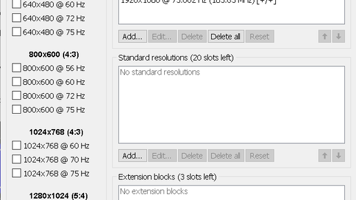 Для этого потребуется установить программу "Custom Resolution Utility" (Официальный сайт - https://custom-resolution-utility.en.lo4d.com/windows) Скачиваем, разархивируем в любое удобное для нас место. Открываем файл CRU. Перед нами интерфейс программы. Нажимаем на Add... Здесь ищем пунт "Refresh rate:" Видим что у нас он 60...