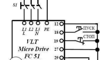 Подключение трёхфазного электродвигателя через Частотный Преобразователь к сети 380 В.