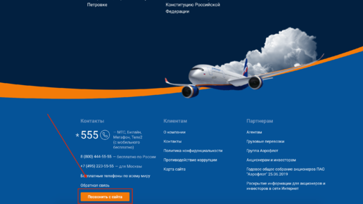 Знаю, что сейчас многим туристам необходимо звонить в Аэрофлот по тем или иным причинам. Если вы за границей, то звонить на 8 (800) вы не можете, а на + 7 (495) звонки платные. Вот как раз для вас и есть эта функция, звонок с сайта. Для того, чтобы позвонить бесплатно в Аэрофлот, идем на официальный сайт https://www.aeroflot.ru/ , листаем в самый низ и находим нужную кнопку. Внимание, кнопка доступна только с полной версии сайта, то есть только с компьютера. Если же компьютера под рукой нет, но...