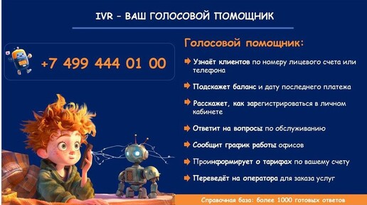 В контактном центре МосОблЕИРЦ по телефону 8 499 444 01 00 круглосуточно работает автоматический голосовой помощник. С его помощью можно передать показания и получить справочную информацию, не дожидаясь ответа оператора, сообщила пресс-служба МосОблЕИРЦ. Автоматизированный сервис выполняет несколько функций: сообщает баланс и дату последнего платежа, помогает зарегистрироваться в личном кабинете, консультирует по вопросам поверки счётчиков, информирует о доставке квитанций и сообщает график работы офисов...