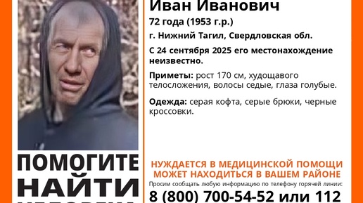 В Нижнем Тагиле подняли полицию и добровольцев на поиски пропавшего 72-летнего мужчины. Утром 24 сентября Иван Попов ушел из больницы №1 на Вагонке и исчез. Он дезориентирован и нуждается в помощи. К месту ухода выдвинулись сотрудники полиции, более 30 волонтеров из отрядов «ЛизаАлерт» и «Скорпион». На месте был развернут штаб. В первую очередь поисковики прочесали близлежащий парк «Пихтовые горы», лесной массив у лыжной базы, обследовали прилегающие к стационару жилые кварталы. Пока зацепок у поисковиков...