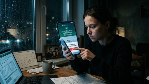 В квартире было темно, лишь экран смартфона отбрасывал холодный голубоватый свет на уставшее лицо Анны. На часах светилось 23:15. Двадцать пятое число каждого месяца было для нее особенным днем — днем, когда она отдавала половину своей зарплаты. Палец завис над кнопкой «Перевести». Сумма: 65 000 рублей. Получатель: ПАО Сбербанк, ипотечный счет Веселова Николая Петровича. Аня глубоко вздохнула и нажала на зеленую кнопку. На экране появилась галочка и ободряющая надпись: «Перевод выполнен». Это был сорок восьмой платеж...
