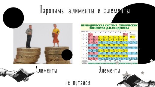 Словарное гнездо АЛИМЕНТЫ - ЭЛЕМЕНТЫ Это слово ошибочно употребляется вместо другого. Значения слов: Алиме́нты - средства к существованию, выплачиваемые по закону нетрудоспособным членам семьи (жене, детям, родителям и т.п.) лицами, находящимися с ними в брачных или родственных отношениях. Элеме́нты - 1. Составная часть чего-нибудь. 2. Основные начала чего-нибудь, первоначальные познания в какой-нибудь области...