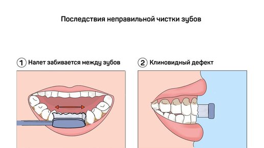Сегодня обсудим очень, по-моему мнению, актуальную тему. Неправильная чистка зубов Давайте признаемся, зубы мы чистим на автомате. И делаем чаще всего это неправильно: чистим их движениями влево-вправо, быстро-быстро. При таком способе чистки мягкий налёт переносится с поверхности зубов в межзубные промежутки и забивается там. В итоге возникает опасность повреждения дёсен и появления клиновидного дефекта, особенно на выступающих зубах (чаще клыках). Немного о клиновидном дефекте: