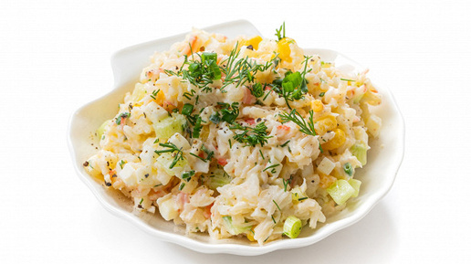 Крабовый салат — замыкающий в тройке главных новогодних салатов. Салату номер один, оливье, мы посвятили на нашем сайте отдельный спецпроект. С тем, как правильно укладывать слоями селедку под шубой, тоже разобрались в этой статье. Теперь очередь разобрать по косточкам (или палочкам?) рецепт крабового салата. В отличие от первых двух рецепт этого салата более вариативен. Редко кто готовит его с настоящим крабом, скорее с палочками или с крабом, но снежным, то есть имитацией. А дальше — что бог на душу положит...