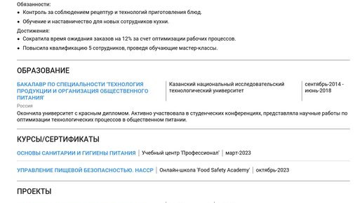 Пример резюме шеф-повара в столовую 2025 - Как составить