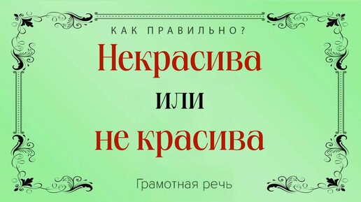 «Некрасива» или «не красива»: как писать правильно? Правильно писать и некрасива, и не красива — в зависимости от смысла. Слитно некрасива употребляется, когда утверждается отрицательный признак: «Эта девушка некрасива». Раздельно не красива — при противопоставлении или уточнении: «Эта девушка не красива, а умна»...