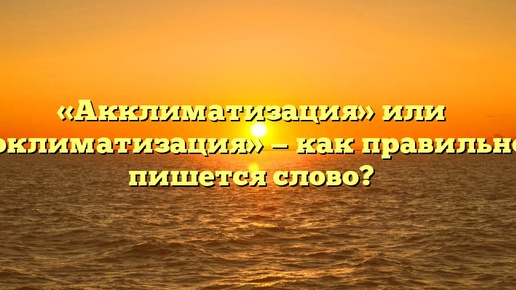 «Акклиматизация» или «оклиматизация» — как правильно пишется слово