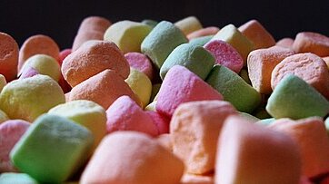 Маршмэллоу (маршмеллоу; от англ. marshmallow) — кондитерское изделие, напоминающее пастилу. Состоит из сахара или кукурузного сиропа, желатина, размягченного в горячей воде, глюкозы, взбитых до состояния губки, к которым может добавляться немного красителей и ароматизаторов Само название «marsh mallow» переводится как «мальва болотная»; так по-английски называется растение алтей лекарственный семейства Мальвовые, из корня которого получали клейкую желеобразную белую массу. Со временем алтей заменили желатином и крахмалом...