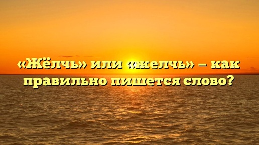 «Жёлчь» или «желчь» — как правильно пишется слово? Написание этого слова отличается от его произношения, давайте разберемся, как верно – «жёлчь» или «желчь», и почему. Как пишется правильно: «жёлчь» или «желчь»? Если опираться на орфографический словарь, в русском языке закреплены оба варианта написания слова: 4. «жёлчь», с гласной «ё» в первом слоге; 5. «желчь», с гласной «е» в первом слоге. Какое применяется правило Перед нами существительное. Затруднение при его написании возникает ввиду того, что при произношении происходит фонетическая замена «ё» на «е»...