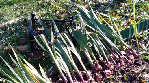 Наши гладиолусы отцвели. Что я делаю дальше. Знаю, что просто так оставлять их в земле нельзя — нужно провести целый комплекс работ. Первым делом я обрезал цветоносы. Оставил небольшой пенёк примерно 5–7 сантиметров. Важно не торопиться и не срезать всё под корень — луковицам ещё нужно время, чтобы набраться сил. Теперь нужно правильно ухаживать за оставшимися листьями. Я оставил здоровые листья — они продолжают питать луковицу. Только пожелтевшие и повреждённые убрал. Для нормального развития луковицы должно остаться 5–10 здоровых листьев...