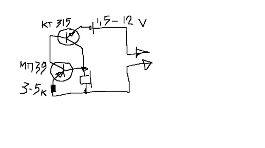 Полезные схемы. Простая прозвонка. Из всех перепробованных прозвонок, эта оказалась более чувствительна к индуктивностям, хотя ей присущи свои недостатки- особенно температурная нестабильность, до срыва генерации. Сама схема собрана в телефоне 64 ом(из старой тлф трубки выдрата) находится обычно во внутреннем кармане, лишь проводки снаружи, так что можно и на морозе работать не рассусоливая неказистая на вид, простая до дури, собрать можно в любом месте земного шара на германии собрать, работает...