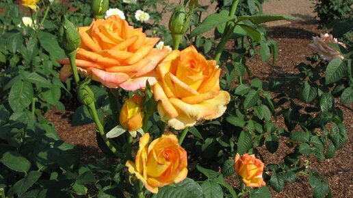 Обычные дачники очень любят чайно-гибридные розы, а ландшафтные дизайнеры их не очень жалуют. Силуэт куста в саду с эстетической точки зрения оставляет желать лучшего, ведь при формировании кроны оставляют несколько побегов, а цветов там мало. Однако есть способ красиво вписать чайно-гибридные розы в свой участок. Чтобы такие розы составили однородную группу, надо посадить хотя бы пять кустов одного сорта. Загвоздка заключается в том, что если розы выращиваются для букетов, то бутоны нужно срезать, как только они начнут раскрываться на побегах...
