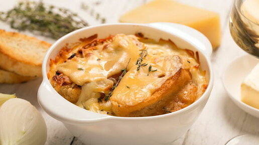 О луковом супе ходят легенды: романтические и не очень. По одной из версий, луковую похлебку варили еще в Римской империи, а в XVII веке во Франции его считали блюдом бедняков, поскольку суп состоял только из трех ингредиентов: говяжьего бульона, хлебных корок и жареного лука. Именно тогда и появился классический рецепт лукового супа. По другой версии, суп случайно изобрел французский король Людовик XV, проснувшийся среди ночи от голода в охотничьем домике. Слуг рядом не оказалось, но предприимчивому королю удалось найти в кладовой бутылку шампанского, масло и репчатый лук...