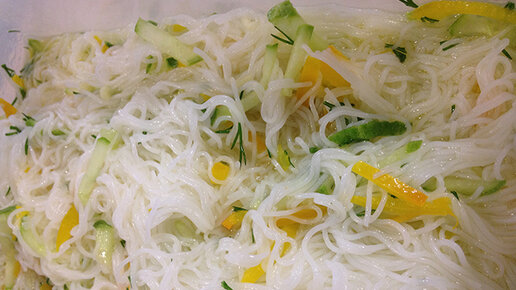 Одним из наиболее популярных продуктов в азиатской кухне является рисовая лапша. На ее основе готовят огромное количество разнообразных блюд: острых и нежных, холодных и горячих, с мясом, грибами, морепродуктами. Зная, как приготовить рисовую лапшу с овощами, можно накормить семью вкусным и очень полезным блюдом. Как приготовить рисовую лапшу с овощами. Ингредиенты • Упаковка рисовой лапши • 1 сладкий болгарский перец • 2 огурца • 2 зубчика чеснока • 1 столовая ложка сахара • 0,5 столовой ложки соли • 2 столовые ложки уксуса • Пучок укропа Как приготовить рисовую лапшу с овощами...