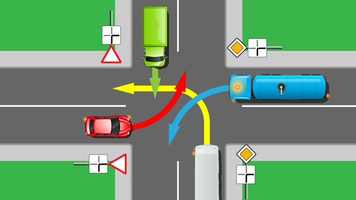 В такой ситуации, как на картинке, иногда могут растеряться даже опытные водители. Что и говорить, если аварии происходят даже на регулируемых перекрестках.