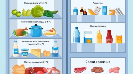 Как правильно распределять продукты в холодильнике? Инфографика
