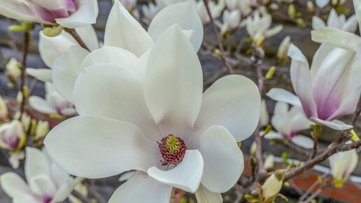 Есть ли секрет для успешного выращивания и обильного цветения магнолии в средней полосе России? И не один, а несколько. Но об этом позже. Сортов магнолии очень много- более 120. Есть листопадные и вечнозеленые, с разнообразной формой и оттенками цветов. Морозоустойчивых сортов не так много - около 25. Секрет № 1 - найти такой сорт. У меня растет Проктора. Гибрид из звездчатой и иволистной магнолии. Выдерживает морозы вот уже на протяжении 15 лет. Ранней весной, когда зелени еще очень мало и все деревья и кустарники стоят с едва наклюнувшимися почками, расцветает такое белое облако...