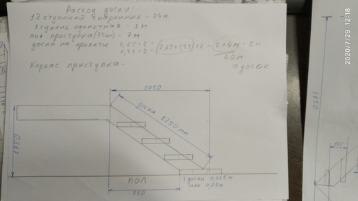 Лестница на второй этаж. Схема постройки. Расчет материалов!