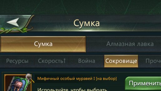 Всем привет, в этой статье я расскажу вам как оптимально на мой взгляд использовать предметы из сумки(желудь), данный гайд подойдет для тех кто играет без доната или с минимальными вложениями. И так первая вкладка «Сумка» по разделам: 1. Ресурсы – их советую всегда держать «запечатанными» в сумке так их проще сохранить от грабежа, и при перелете в другую нацию с собой можно взять только те что в сумке и то что позволяет объем хранилища, все лишнее при перелете сгорает, а запечатать свободные ресурсы...