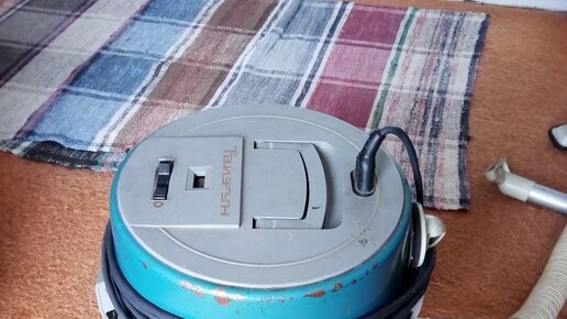 Остался от прежних хозяев советский пылесос «Тайфун». Рабочий, ничуть не хуже нынешних, еще фору даст. Существует несколько расцветок — красный, голубой, синий, зелёный. Нам достался голубой. Видать у прежних хозяев испортился/порвался шланг и они заклеили его скотчем, что видно на фото. На корпусе в некоторых местах слезла краска. Пылесос «Тайфун» состоит из верхнего корпуса, в котором смонтирован воздуховсасывающий агрегат, и нижнего корпуса, являющегося пылеприемником. Соединение верхнего и нижнего корпусов осуществляется при помощи двух замков...