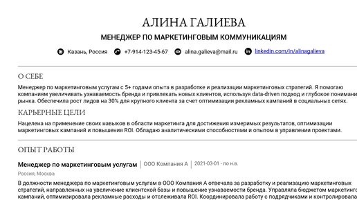 Заголовок резюме – первое, что видит рекрутер. Он должен быть четким, конкретным и отражать вашу специализацию. Ваша цель – сразу дать понять, на какую позицию вы претендуете и чем можете быть полезны компании. Для менеджера по маркетинговым услугам важно указать не только основную должность, но и, при необходимости, отразить специализацию, например, "менеджер по маркетинговым услугам в сфере digital" или "менеджер по маркетинговым услугам, B2B сектор". Это поможет рекрутеру быстрее понять ваш опыт и соответствие требованиям вакансии...