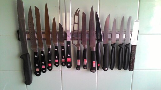 У меня в работе всегда много ножей разного предназначения, поэтому, когда их количество превысило 10 штук, пришлось мне думать, как организовать кухонное пространство в 6-метровой кухне так, чтобы освободить дополнительные метры. Подставки для ножей занимали на столешнице очень много места, поэтому я нашла рациональное решение, которое стоило мне минимальных затрат. Задача №1 Покупка магнита на 16 ножей мне обошлась со скидкой в 450 рублей. Магнит очень мощный, рассчитан на эксплуатацию до 20 лет...