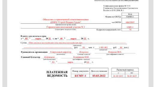 Унифицированная форма № Т-53 - платежная ведомость