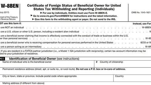 Заполнение W-8ben: 30% или 13% налога с дивидендов. Как заполнить форму W-8ben?