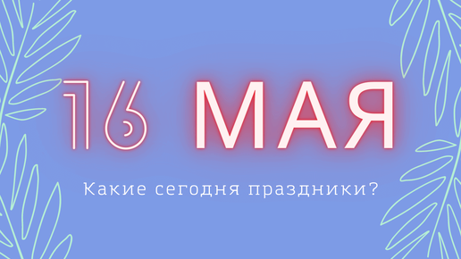 16 мая: какой сегодня день и праздник отмечают во всем мире, а так же в России, Украине, Казахстане и других странах СНГ, все национальные, государственные и международные праздники, выходные дни связаны с этой датой Узнайте какие праздники и события отмечают в этот день 16 мая текущего года в вашей стране или городе, а также в разных уголках мира. Здесь мы собрали...