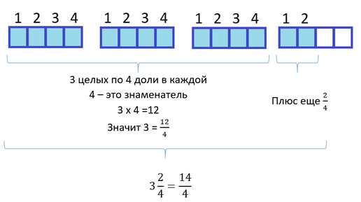 Получается, что в правильной дроби, число взятых долей всегда меньше общего количества долей в целом. А значит она всегда меньше целого...