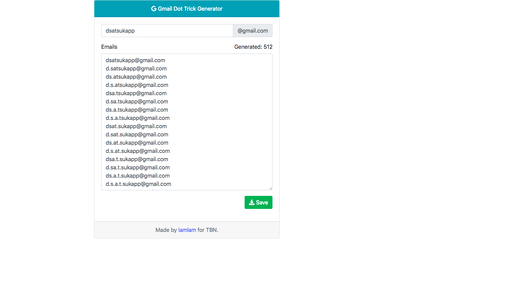 Gmail Dot Trick Generator или Генератор почт Gmail вас удивит. Создание почт Gmail за считанные секунды Электронных почт много, но адрес все равно один. Допустим отправляем сообщение с моей почты Яндекса. Моя почта Gmail это dsatsukapp@gmail...