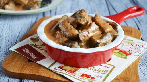 БЕФСТРОГАНОВ ИЗ ГОВЯЖЬЕЙ ПЕЧЕНИ СО СМЕТАНОЙ / Быстрый и вкусный рецепт печени по-строгановски