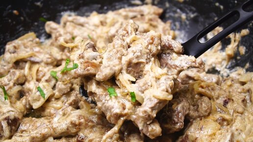 Бефстроганов из печени. Результат всегда потрясающий, при этом готовить достаточно просто. Особая технология тушения печени обеспечивает мягкость и нежность печенки. Рекомендую приготовить Вам обязательно понравится. ИНГРЕДИЕНТЫ Печень говяжья -500гр.