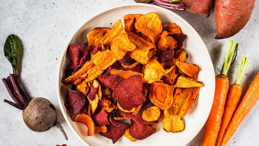 Овощные чипсы хрустящие, имеют интересный вкус, не содержат жира, в них сохраняется большая часть витаминов и других питательных веществ. Приготовить овощные чипсы довольно просто и не займет много времени. И вы можете быть уверены, что закуска полезна для здоровья, не содержит трансжиров, глутамата натрия и других ингредиентов, вредных для здоровья. Готовить овощные чипсы можно в сушилке для овощей и в духовке. Чипсы из магазина содержат множество нездоровых ингредиентов, которые серьезно влияют на кровоток, массу тела и пищеварение...