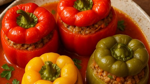 Фаршированные перцы — это блюдо, которое невозможно не полюбить. Сочные, ароматные, с нежной начинкой и аппетитным соусом, они одинаково хороши и для семейного ужина, и для праздничного стола. Сегодня я расскажу, как приготовить их так, чтобы все гости попросили добавку. Подавайте перцы горячими, полив их соусом и посыпав свежей зеленью...