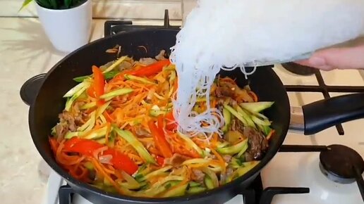 Быстрый способ приготовления "Фунчозы" с овощами, без мяса.