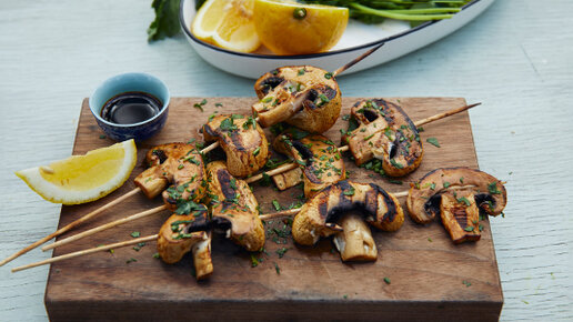 20 минут в правильном маринаде + 3 минуты на гриле - и обычные шампиньоны превращаются в аппетитное вегетарианское блюдо, легкий гарнир или отличный ингредиент для летнего салата. Мелкие грибочки можно жарить целиком, на тарелке они будут смотреться еще лучше! Вам понадобится: Шампиньоны 500 г Для маринада: Уксус бальзамический 60 мл